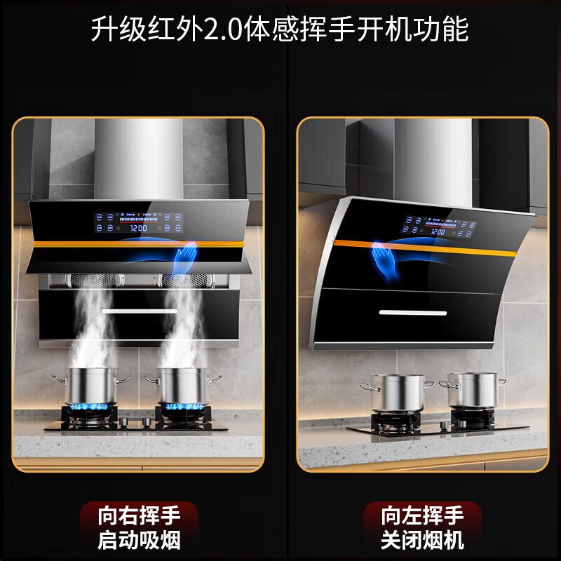 家用厨房大吸力吸油烟机双电机侧吸式自动清洗脱排抽油烟机燃气灶套餐烟机 9