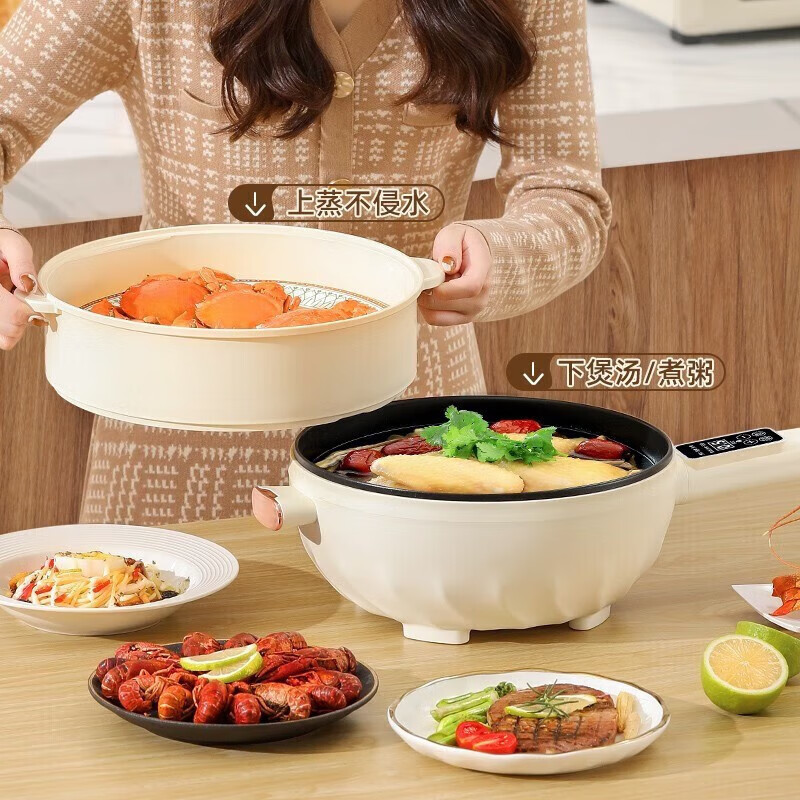 电炒锅多功能炒菜一体大功率不粘锅家用宿舍电火锅智能温控电热锅