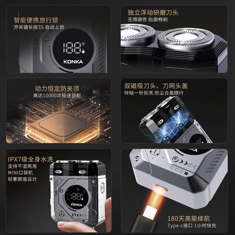 剃须刀电动刮胡刀便携款迷你双头旋转式递须刀可水洗干湿双剃