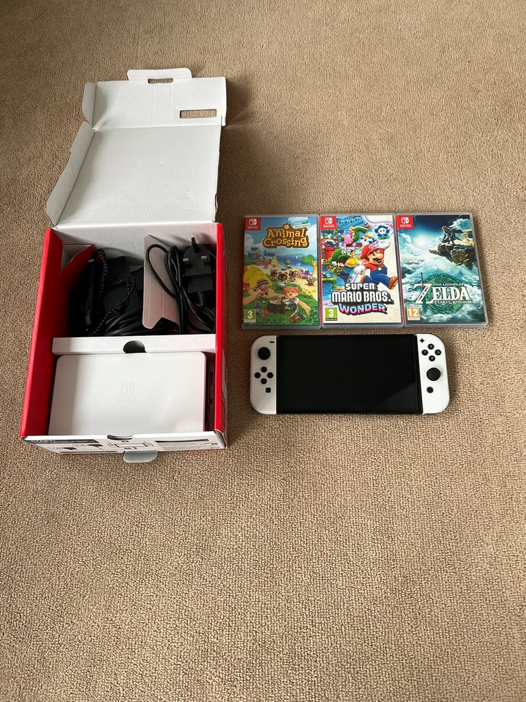 Nintendo Switch(OLED版)含3款游戏,9成新,配件全