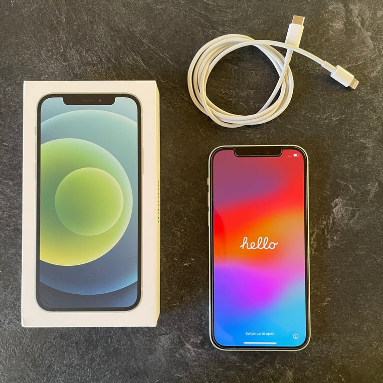 出售二手苹果 iPhone 12 绿色 64GB 解锁 SIM 卡 89% 电池健康盒装,欢迎致电!